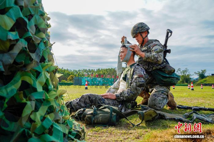 图为参训民卒正正在停止自救互救考察。孔凡是泽 摄