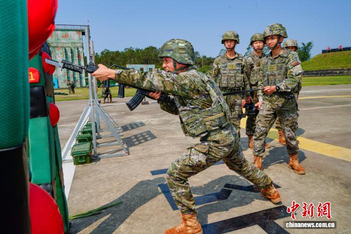 图为锻练员正正在为参训民卒示范班组策略配合组训办法。马起飞 摄